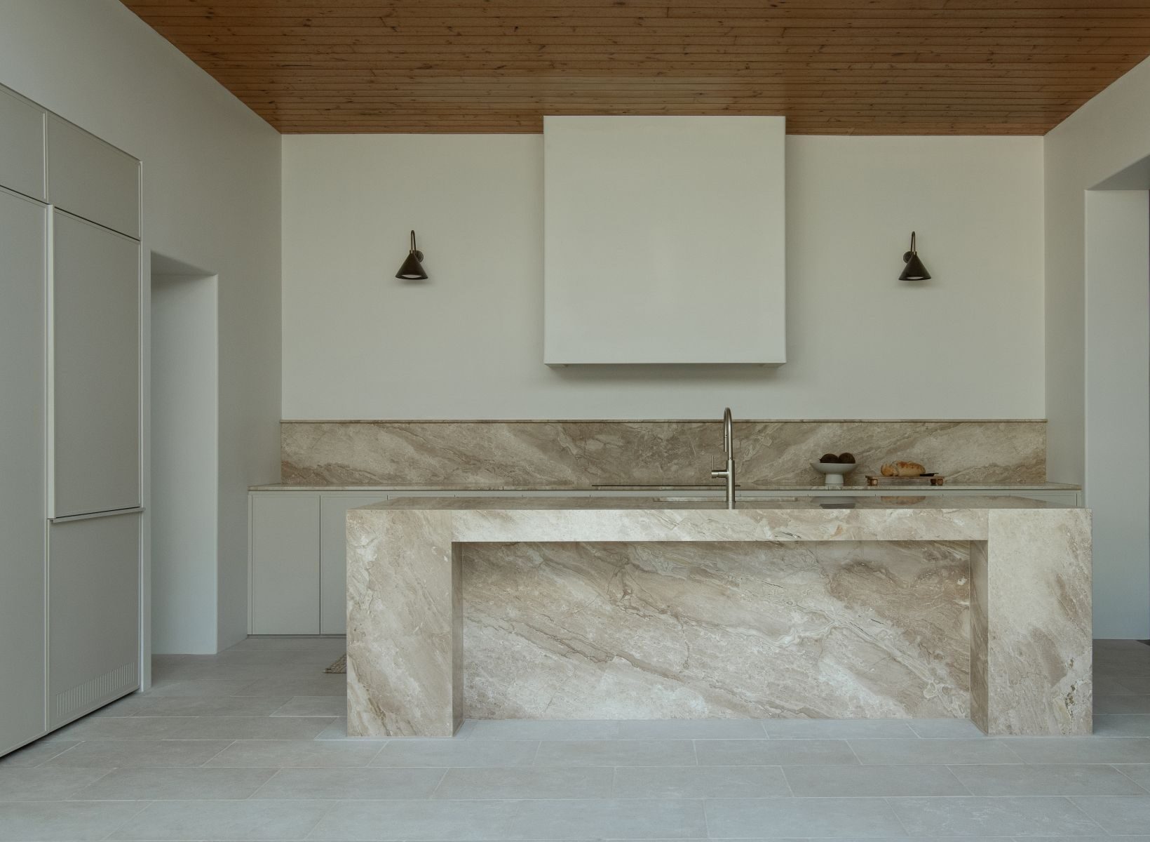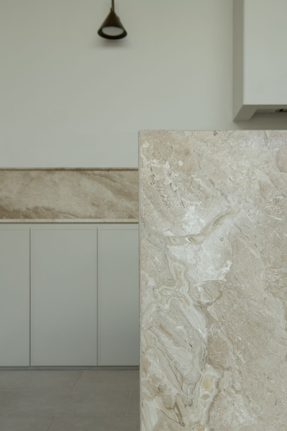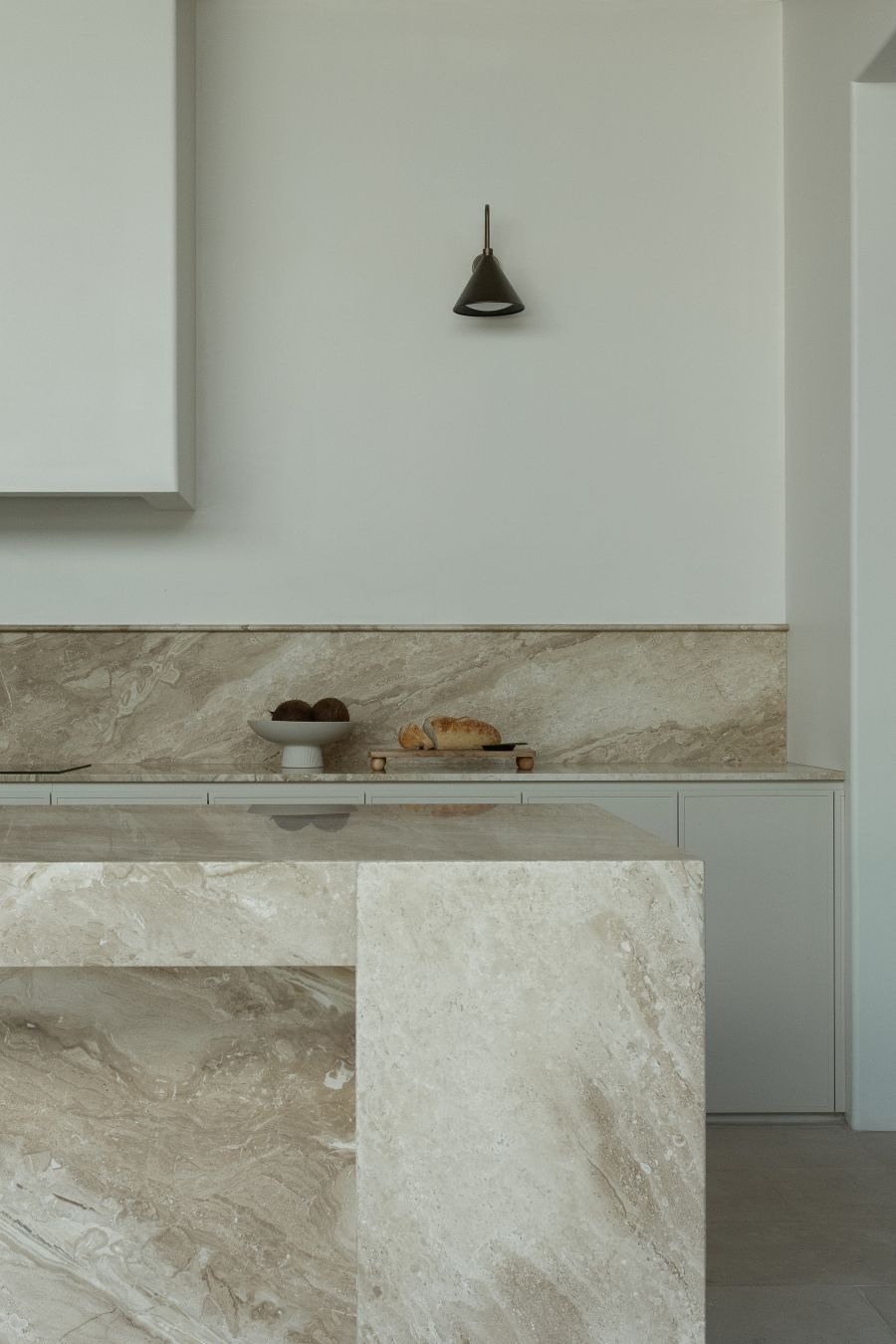The cabinetry has a premium 2pac finish, creating a smooth, durable surface that reflects light beautifully and stands up to daily use. Combined with natural stone and warm timber overhead, the space feels inviting, relaxed, and effortlessly refined.