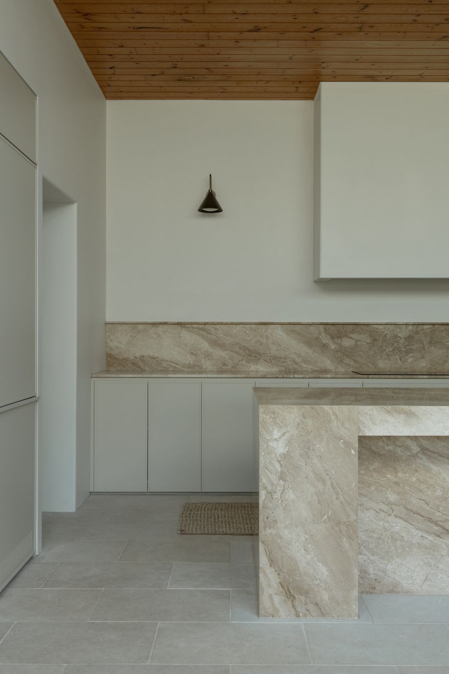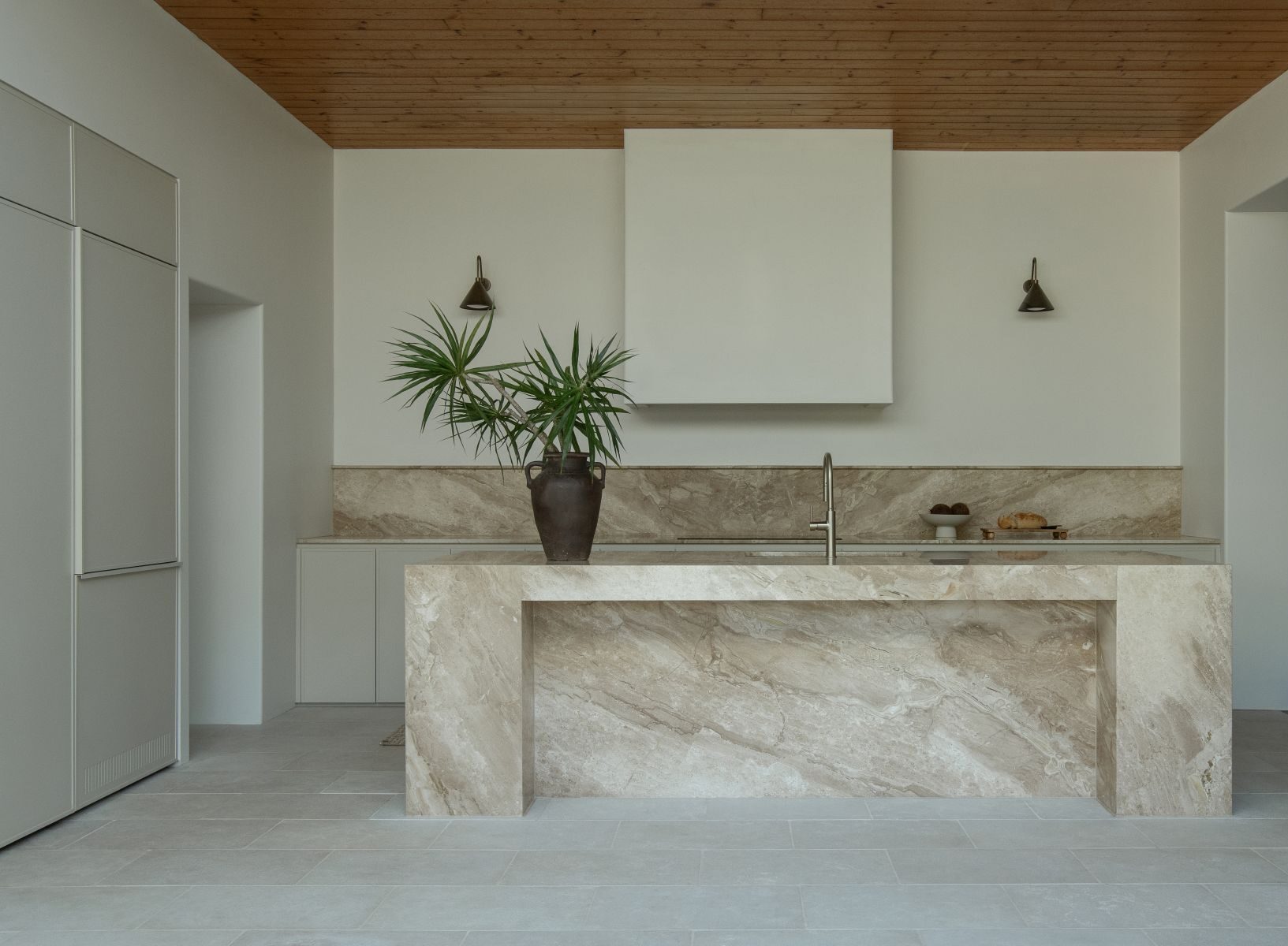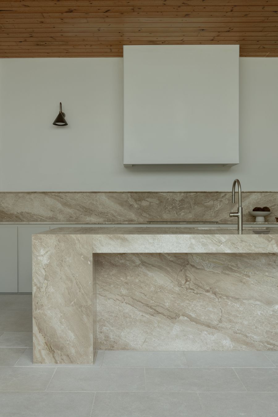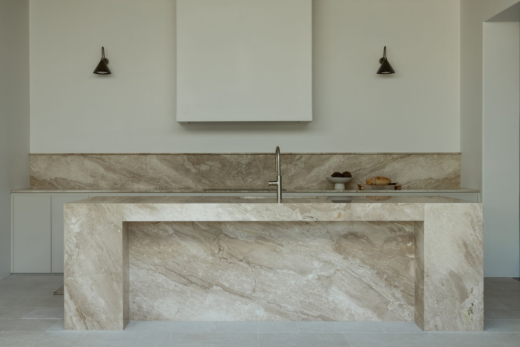 The cabinetry has a premium 2pac finish, creating a smooth, durable surface that reflects light beautifully and stands up to daily use. Combined with natural stone and warm timber overhead, the space feels inviting, relaxed, and effortlessly refined.